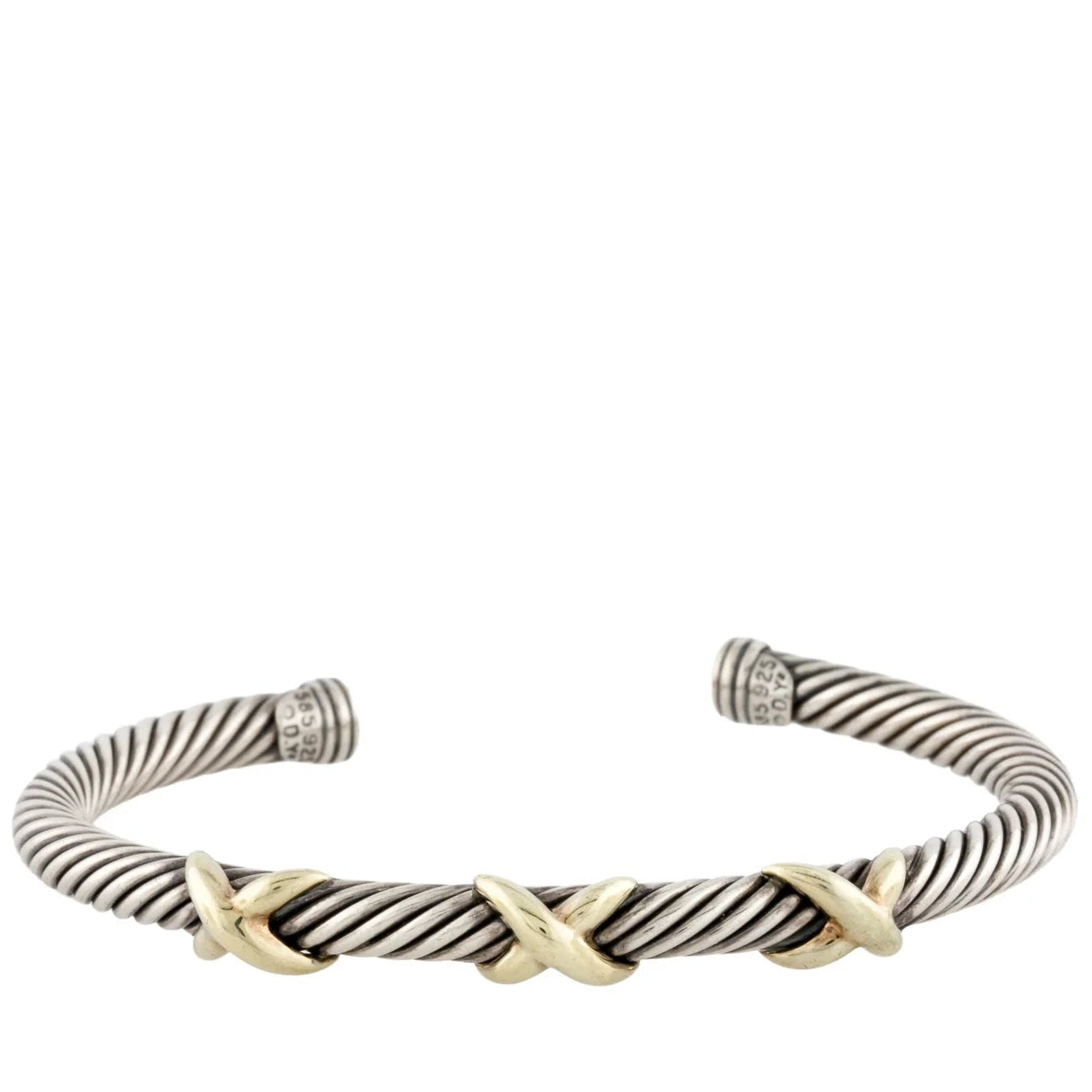 Pre-Loved David Yurman Triple "X" Station Bracelet in Sterling Silver and 14Kt Yellow gold. 5mm cable |