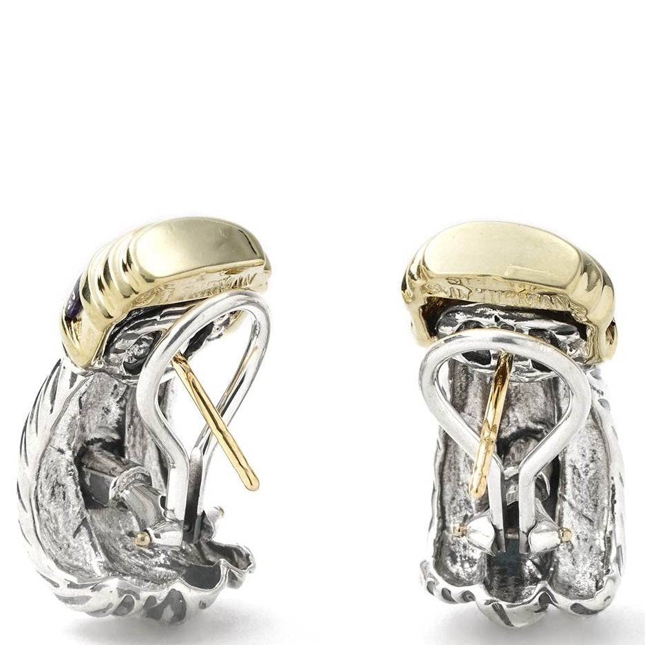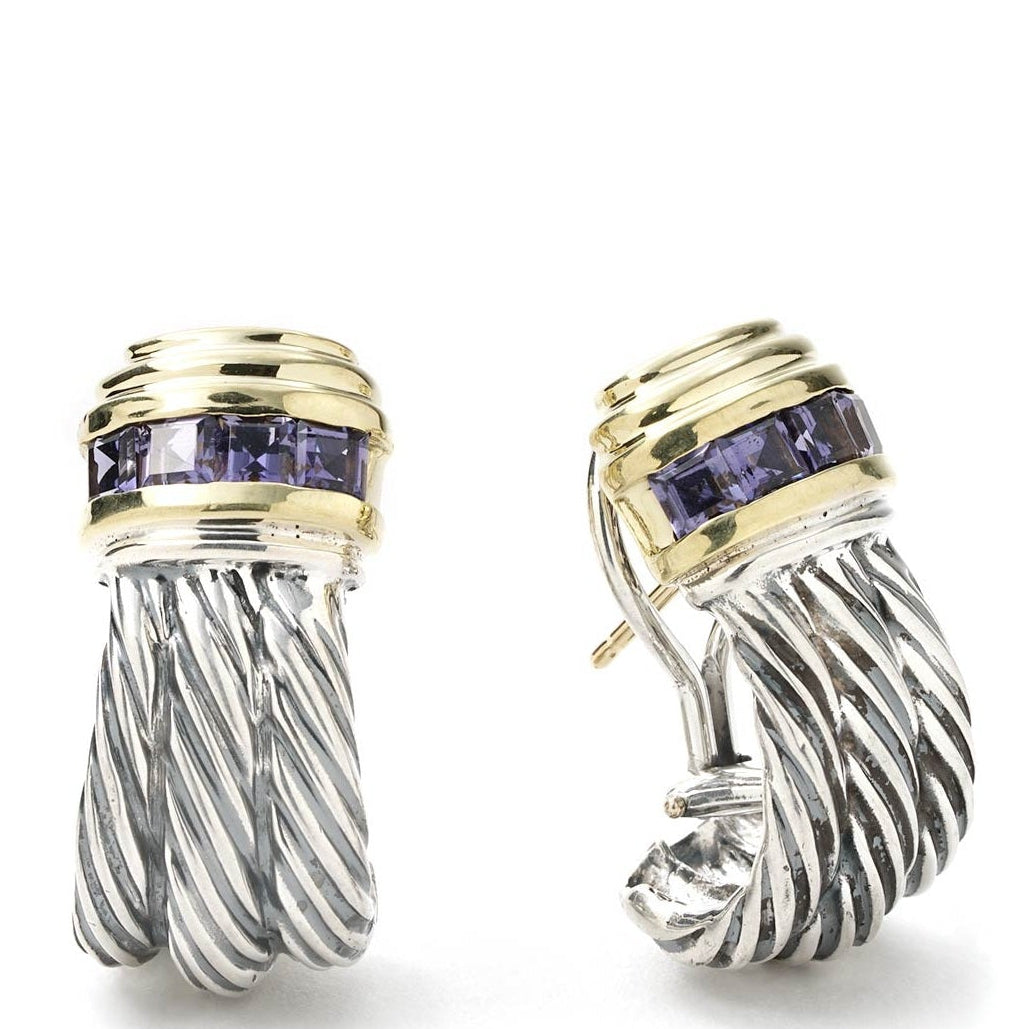 Pre-Loved David Yurman Princess Earring, featuring Iolite, in tu-tone 14k yellow gold and sterling silver feature a cable detailing and omega back closures. Includes DY pouch