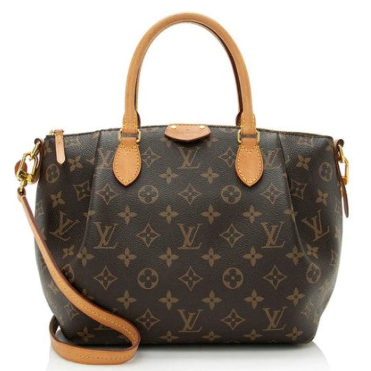 Pre-Loved Louis Vuitton Monogram Turenne Pm in traditional monogram canvas, brass hardware, rolled handles, detachable adjustable strap, leather trim, canvas lining, interior pockets, zip closure at top. |