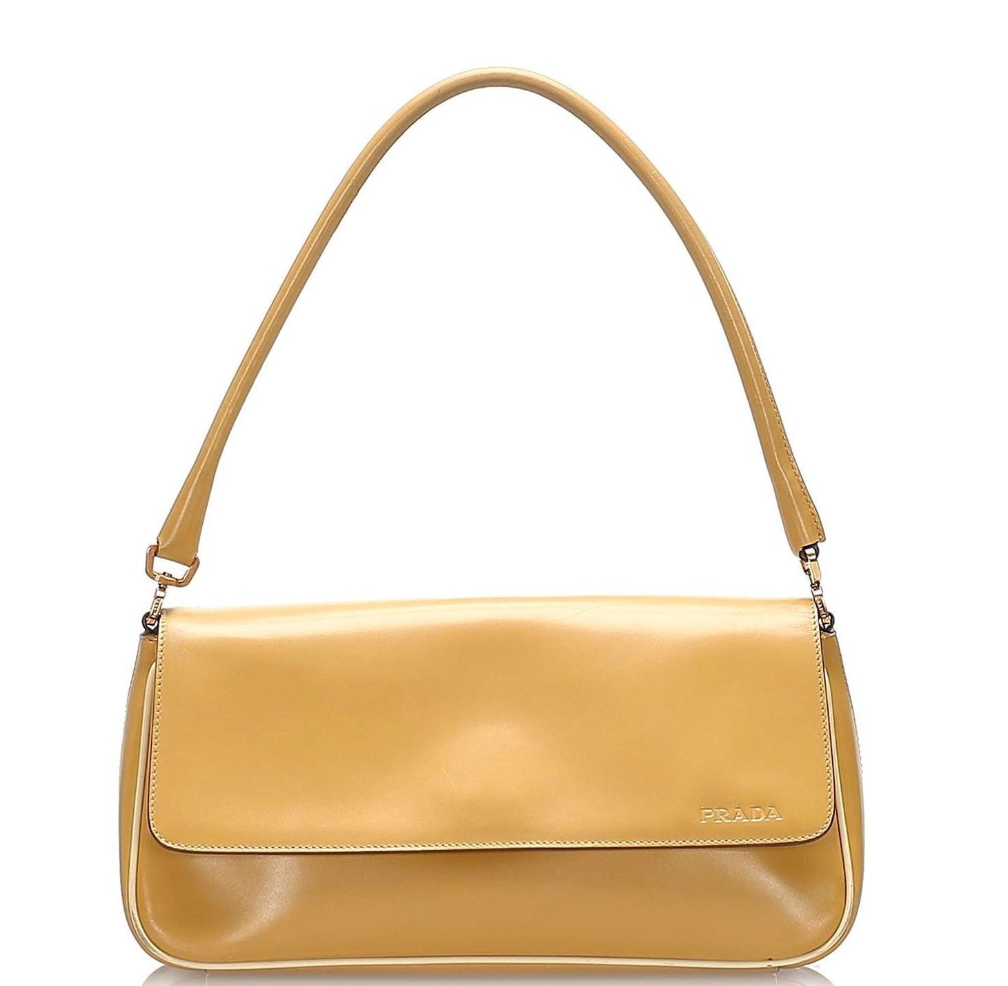Vintage Prada Baguette Shoulder Bag in beige smooth calfskin leather, detachable leather handle, logo embossed in front, interior with a zip pocket. Very Good Condition
